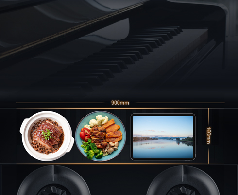 老板電器國(guó)家級(jí)工業(yè)設(shè)計(jì)中心 亮黑色鋼琴漆面置物臺(tái),搭配跑道圓側(cè)翼 優(yōu)雅與速度的完美融合,詮釋廚房非凡意義