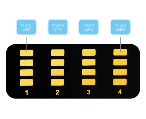 濾芯指示燈全部熄滅,伴有提示音,則濾芯壽命到期。